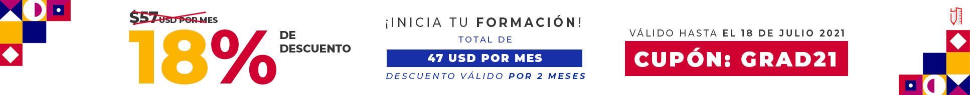 Esta oferta es válida hasta el 18 de julio de 2021 y es solo para estudiantes de nuevo ingreso.