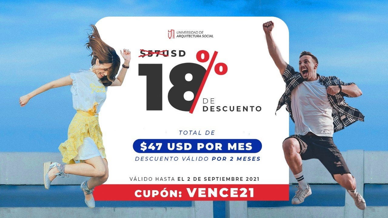 Esta suscripción mensual te dará acceso a tu curso virtual de la Universidad de Arquitectura Social haciendo dos pagos mensuales de $47usd.